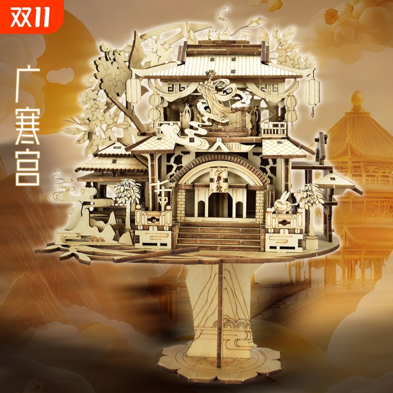 广寒宫八音盒3D立体木制DIY手工音乐盒积木质拼装模型拼图送礼物