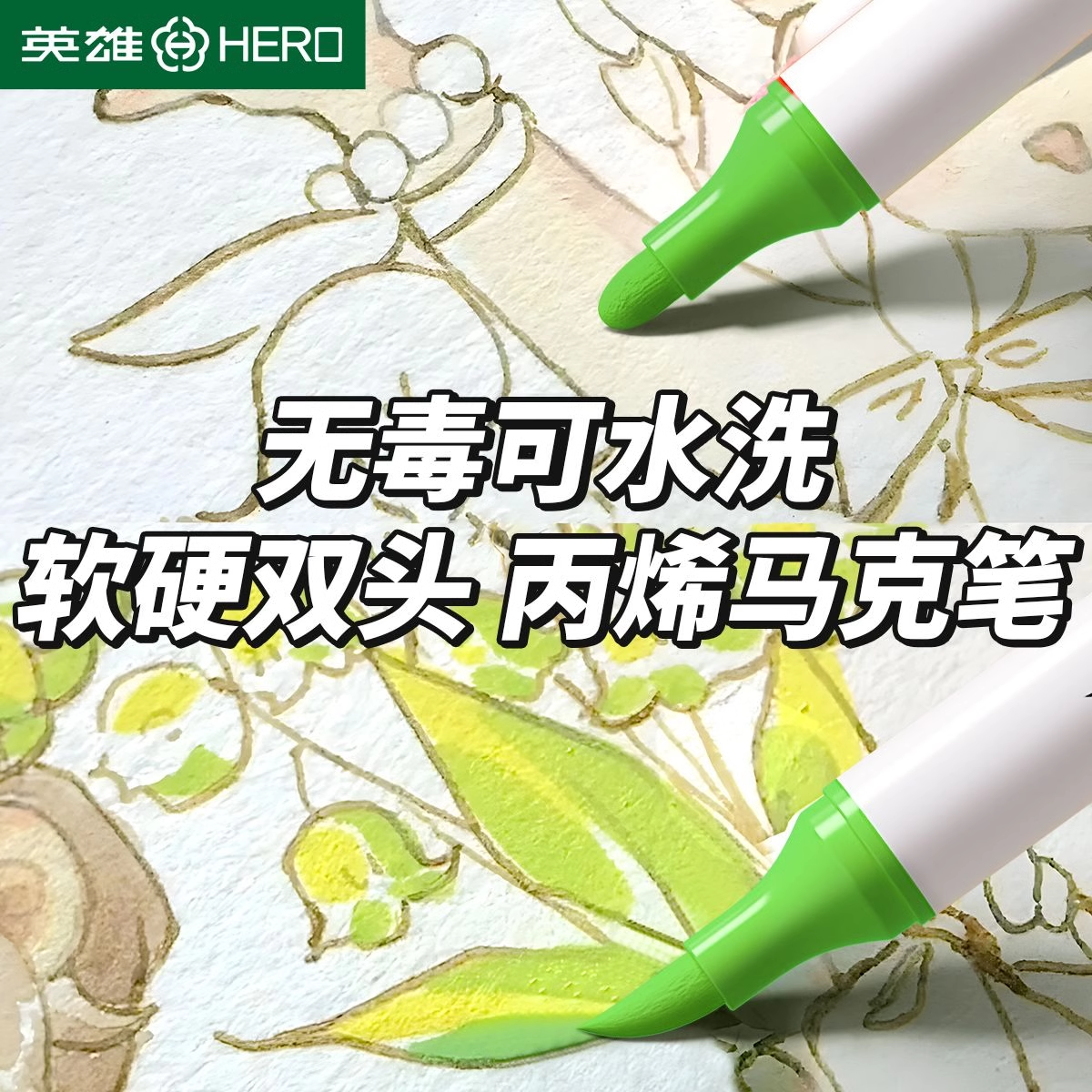 英雄全新升级第三代丙烯马克笔双头高颜值软头小学生美术专用彩笔儿童