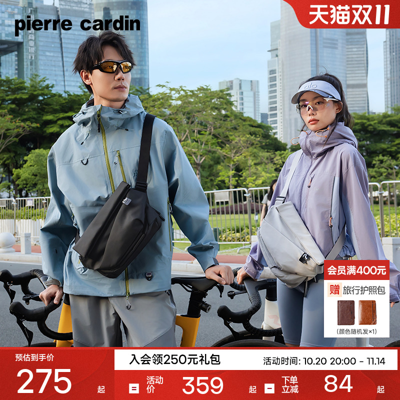 皮尔卡丹男士斜挎包机能风通勤休闲便携背包女轻便多功能单肩挎包