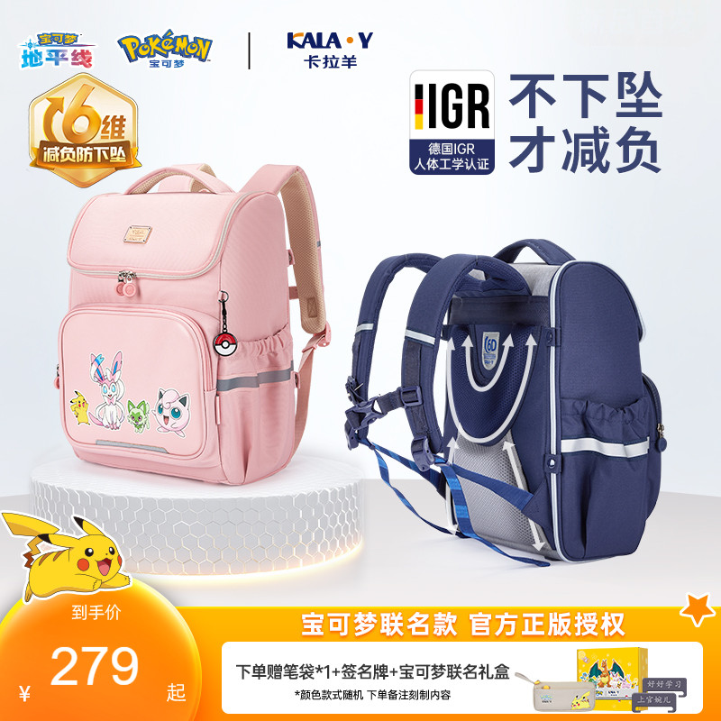 【宝可梦联名款】卡拉羊大嘴书包男1-4-6年级小学生减负防下坠女