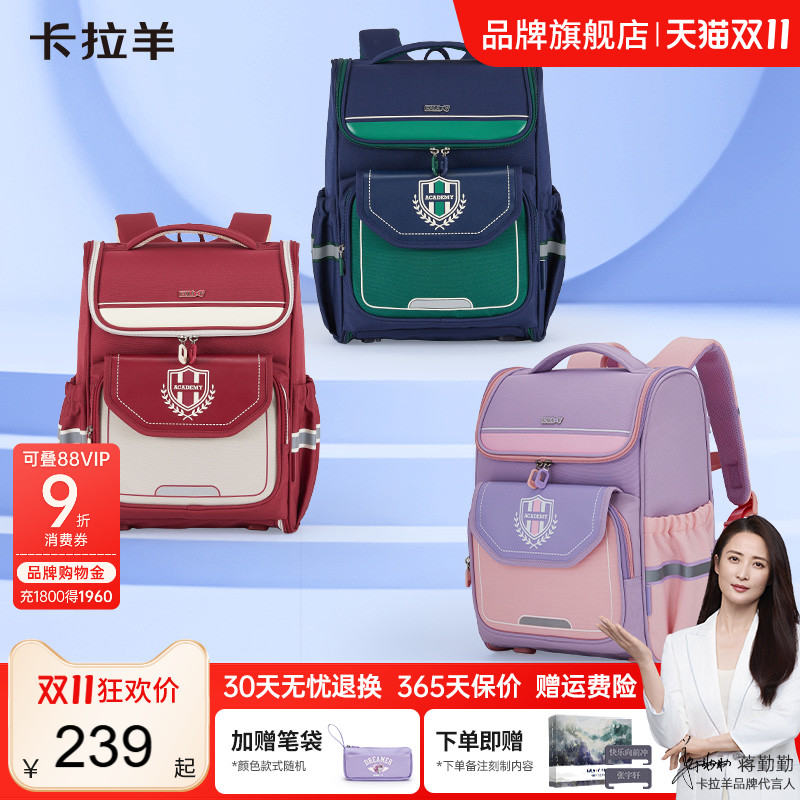 卡拉羊1-4-6年级小学生减负防下坠大嘴书包轻便男女儿童护脊背包
