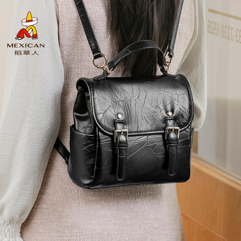 稻草人新款书包休闲双肩包大学生通勤电脑包大容量旅行出游背包女