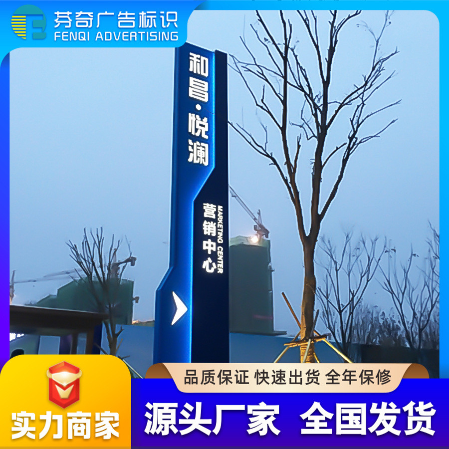 户外导向牌广告标识牌大型地产商场景区立式发光不锈钢精神堡垒