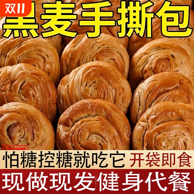 无加蔗糖黑麦手撕面包糖尿病人食品无糖精专用全麦粗粮代早餐面包