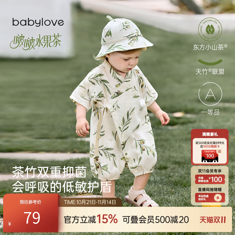 babylove婴儿连体衣夏季竹棉山茶纱布和尚服宝宝哈衣薄款透气