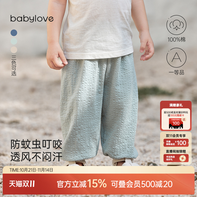 babylove宝宝防蚊裤夏季薄款纯棉纱布宽松休闲裤婴儿时尚百搭