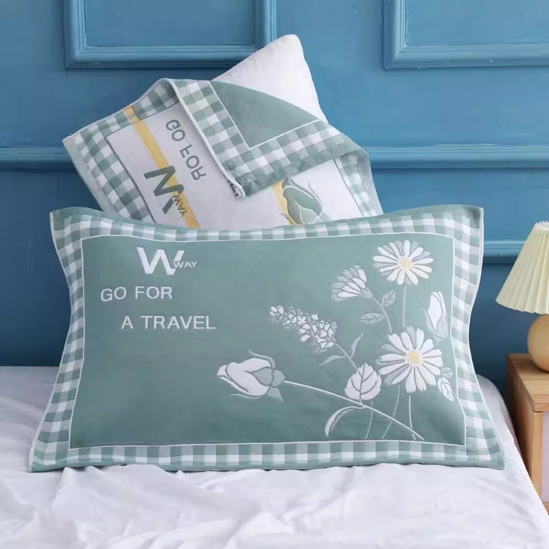 枕巾一对加大加厚纱布透气吸汗隔脏家庭宾馆家用大号四季枕头枕巾