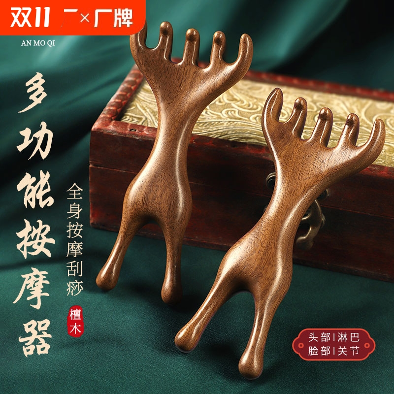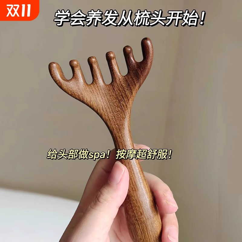 金丝檀木鹿角按摩梳 六爪头部按摩头皮经络梳头疗抓头神器鹿角梳