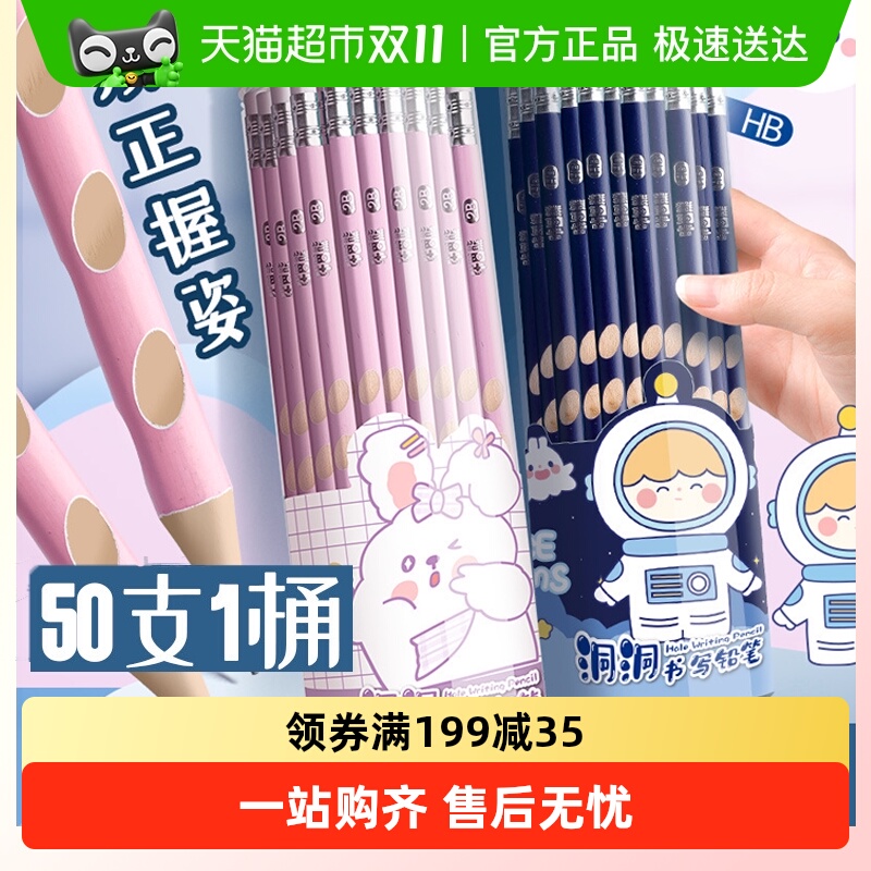 佳美奥特曼洞洞铅笔男孩小学生专用一二年级三角杆形型正姿铅笔带橡皮