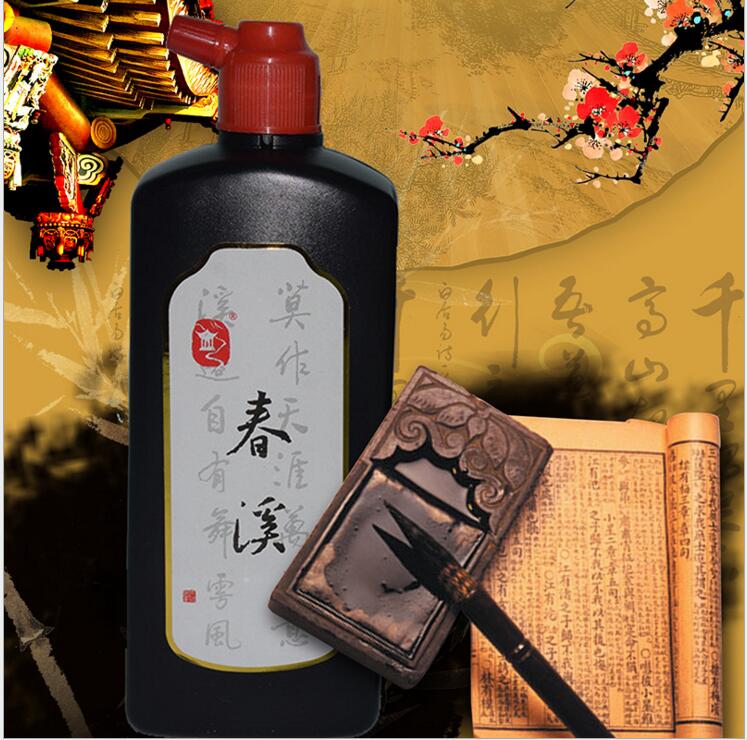 书画墨汁 春溪 毛笔书法国画初学者黑小大瓶250g500g批发正