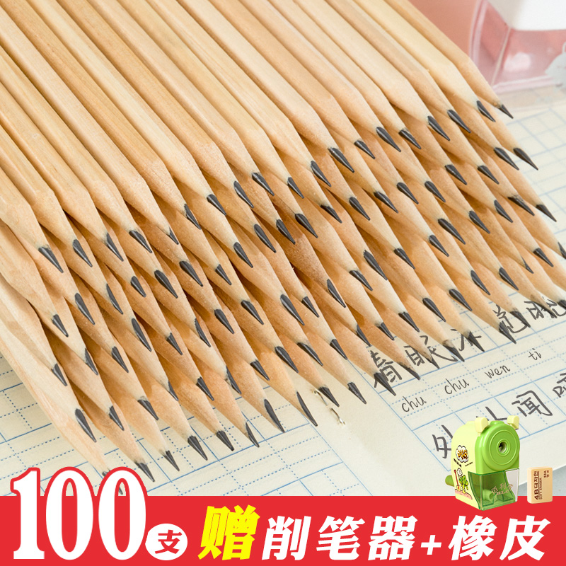 100支原木铅笔小学生专用一二三年级hb六角杆不断芯无毒幼儿园儿