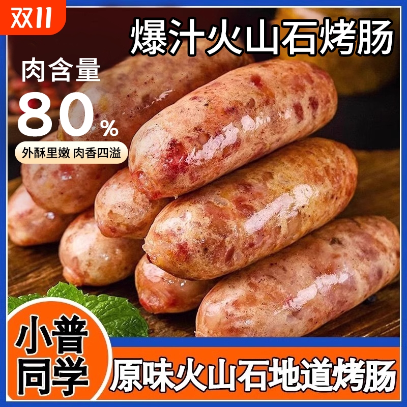 正宗脆皮烤肠500g单根50g猪肉烤肠生鲜商用批发火山石台式烤肠