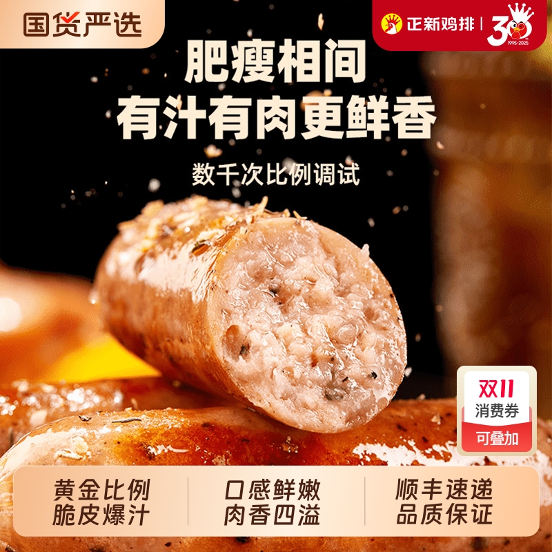 正新脆皮烤肠火山石原味黑椒味猪肉鸡肉肠500g空气炸锅冷冻半成品