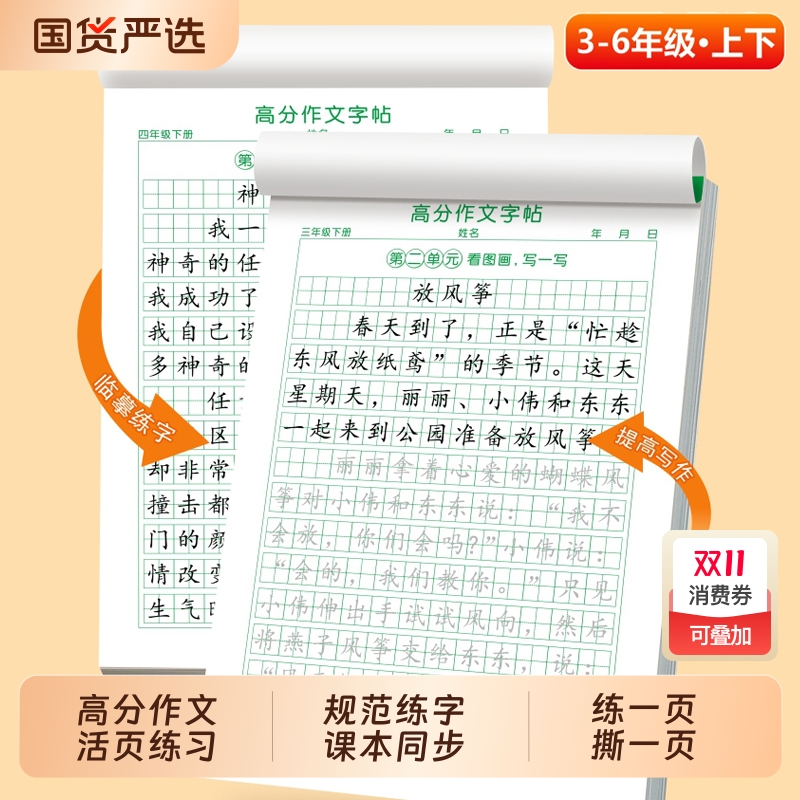 小学生作文字帖人教版语文课同步三四五六年级写作练字本满分练字帖硬