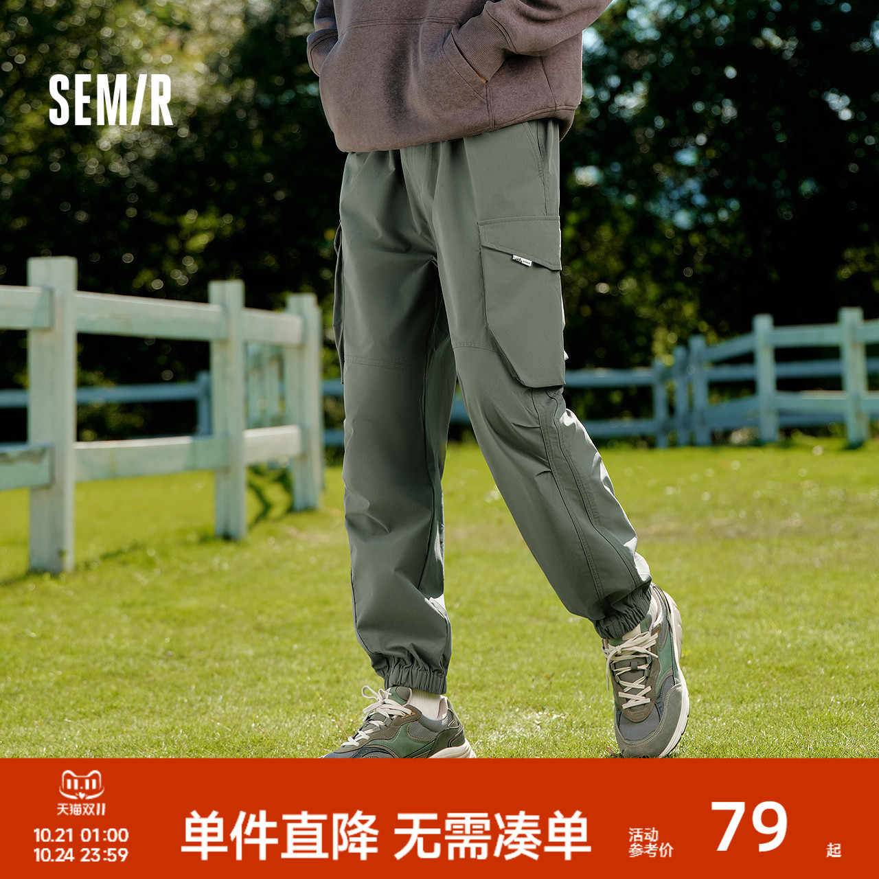 森马束脚工装裤男显瘦百搭运动休闲男大口袋裤子美式潮流直筒裤
