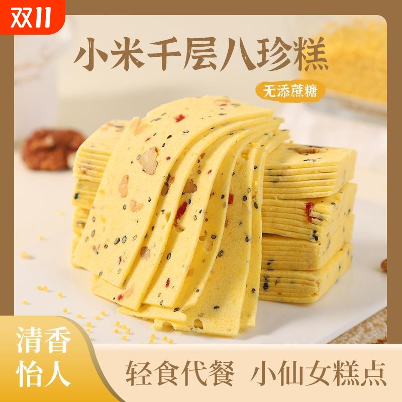 小米千层八珍糕茯苓芡实无蔗糖蔓越莓云片糕中老年代餐米糕