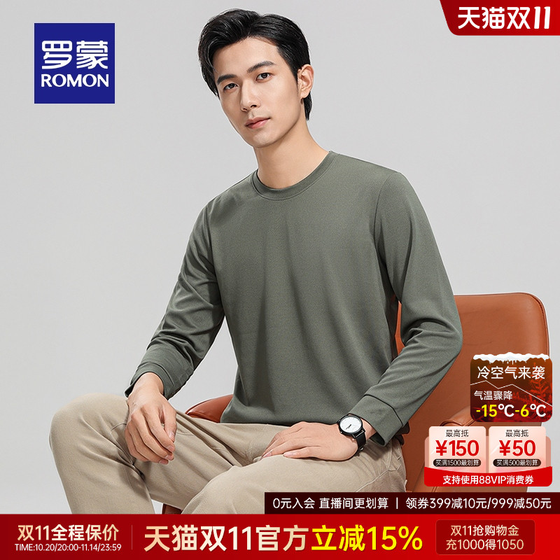 罗蒙男士时尚休闲菠萝格长袖T恤