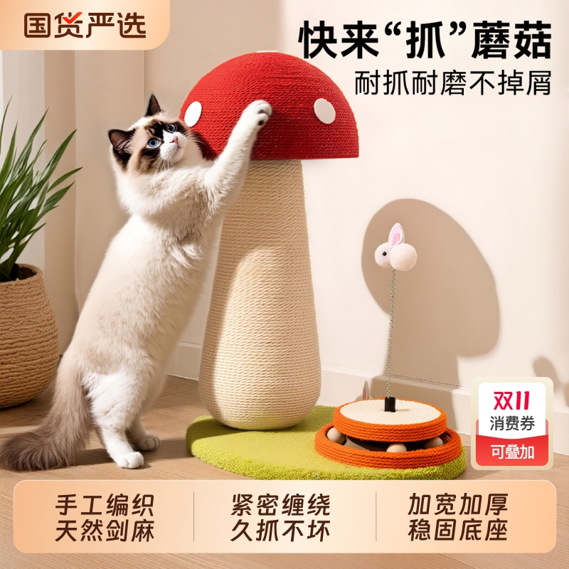 剑麻猫抓板立式猫爬架耐磨不耐屑耐抓猫咪磨爪器玩具红蘑菇猫抓柱