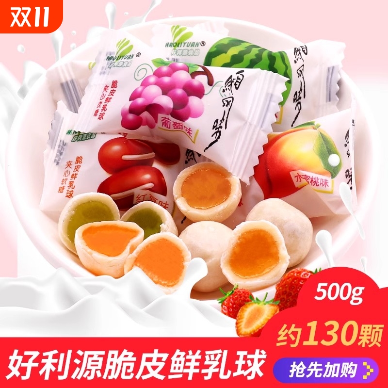 好利源鲜乳球软糖奶糖水果糖夹心网红喜糖糖果零食脆皮西瓜结婚