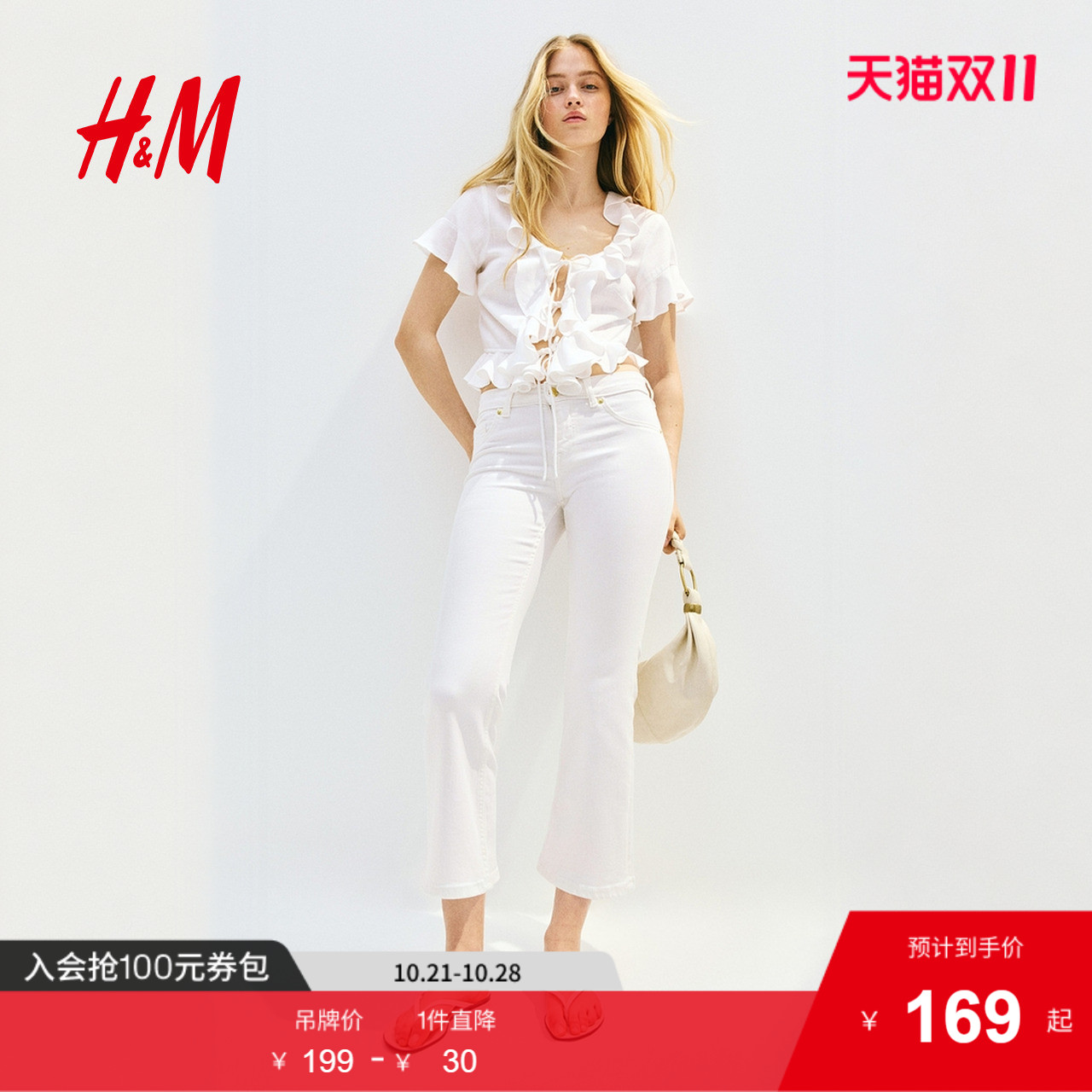 HM牛仔裤2025年新款时尚女装及踝低腰喇叭牛仔裤1282191