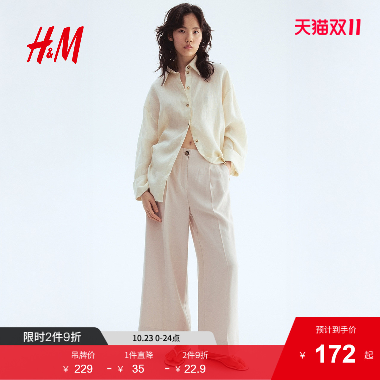 HM2025年秋季新款女装时尚休闲及踝阔腿裤1283192