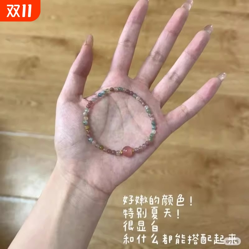 手链要戴五彩斑斓的啦!夏天显白粉色碧玺手串新中式配饰品串珠