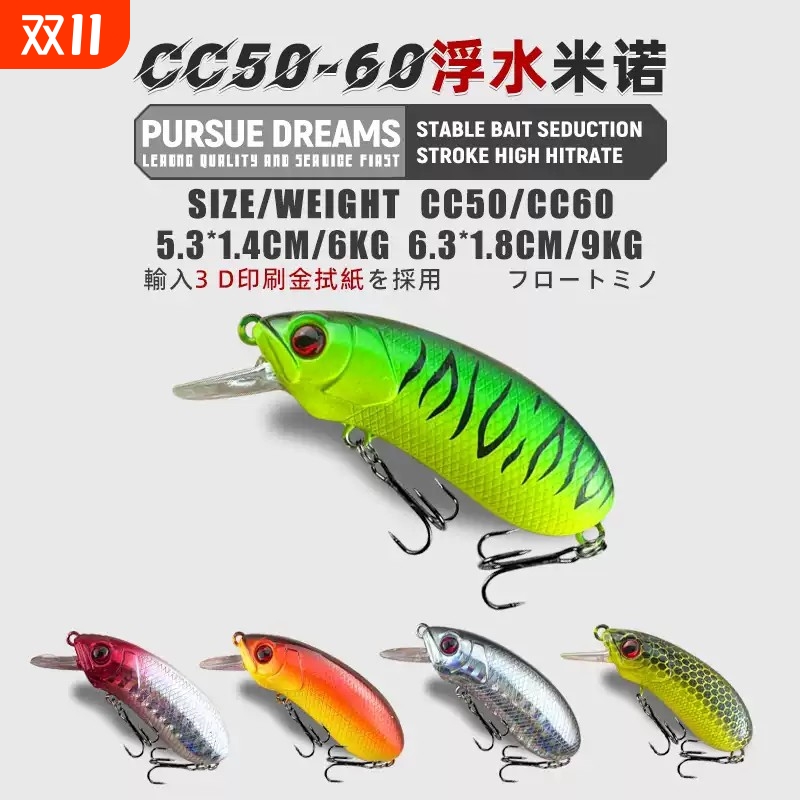 路亚饵CC60缓沉沉水小米诺通杀钓鲈鱼马口翘嘴鱼远投假饵摇滚胖子
