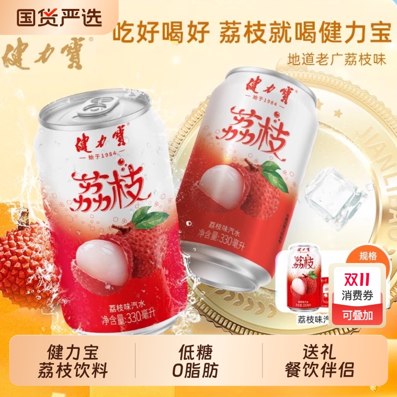 健力宝地道荔枝风味碳酸饮料低糖0脂肪330ml*20罐果味解腻清