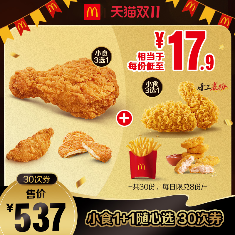 【下拉详情有惊喜】 麦当劳 小食1+1随心选 30次券【谨防诈骗