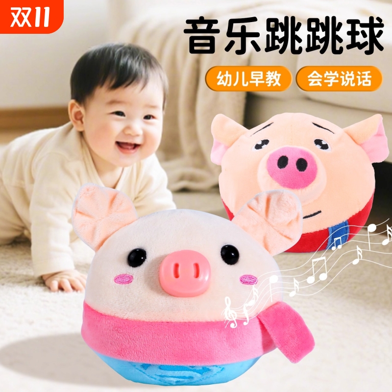 面包跳跳球宝宝音乐跳跳猪网红感统训练婴幼儿会学说话的哄睡神器