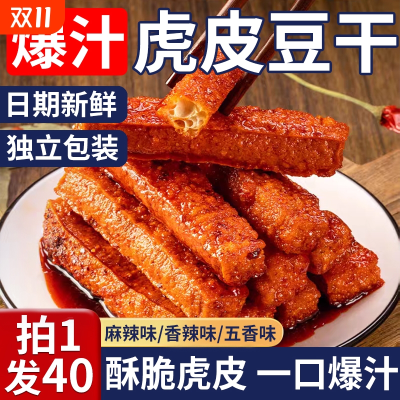 虎皮豆干麻辣零食香干解馋休闲湖南特产小包装爆汁辣味好吃抗饿