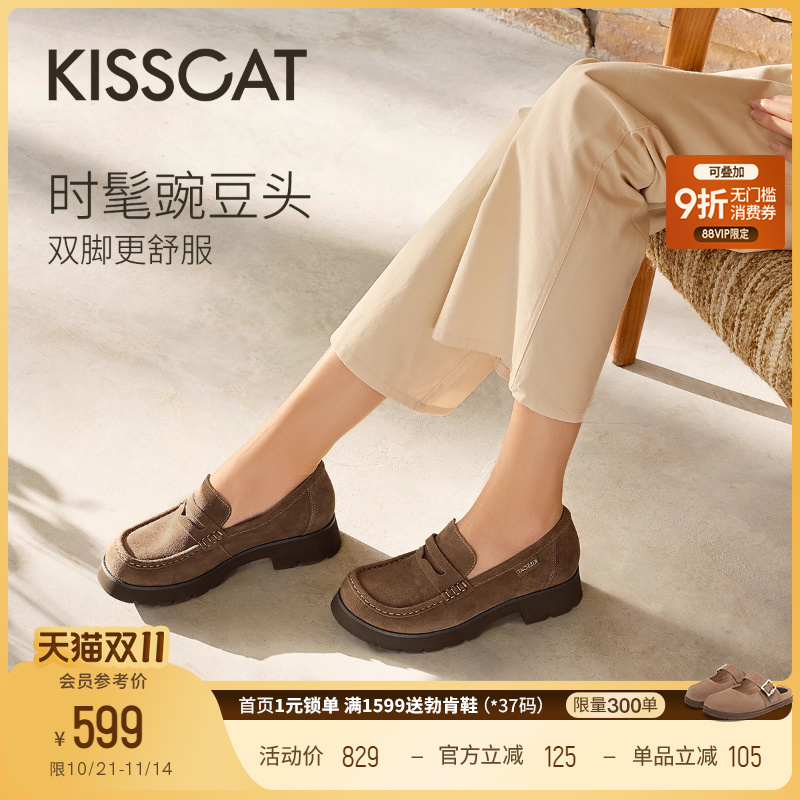 KISSCAT接吻猫[豌豆系列]大头鞋25新棕色豆豆鞋乐福鞋厚底
