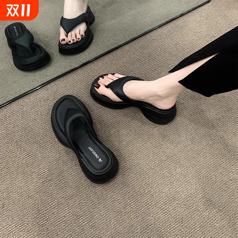 大东dd平底夹趾拖鞋女2025夏季外穿新款女鞋法式厚底海边沙滩凉