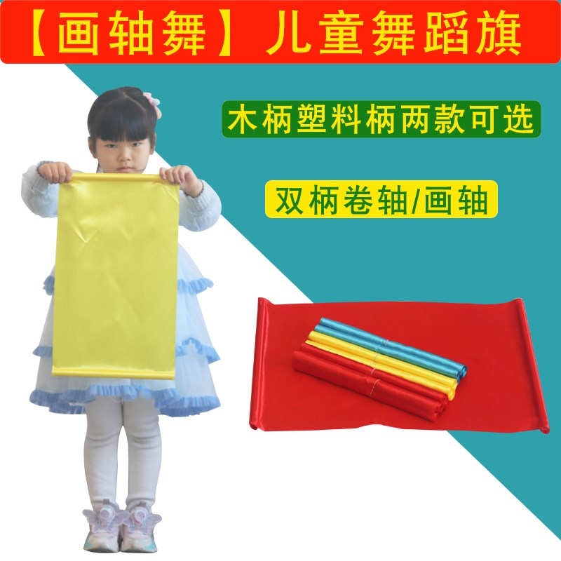 画 划轴旗操舞蹈旗子手拿跳舞双柄儿童幼儿园多色做操活动卷轴道