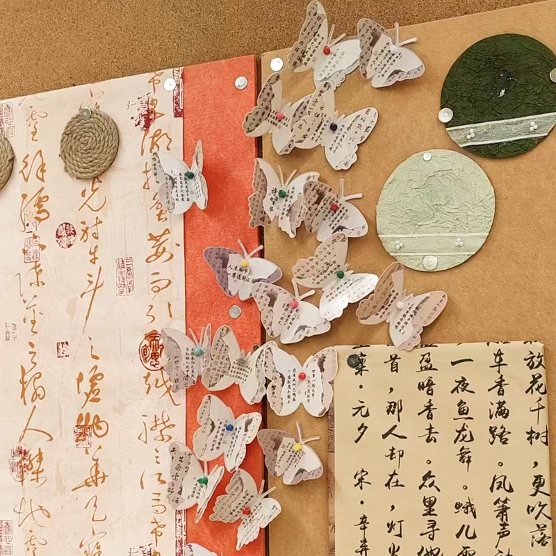 新中式手工国风书法蝴蝶扇子明信片幼儿园水墨江南环创装饰材料