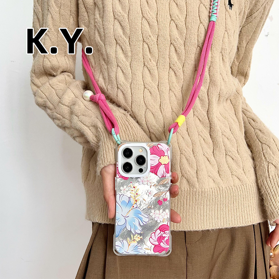 ins卡通樱桃熊猫手机壳带挂绳适用于iPhone15/16pro