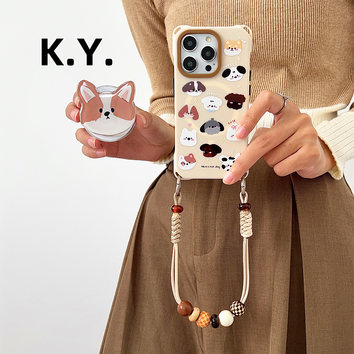 卡通狗磁吸支架手机壳带挂绳适用于苹果17/16Pm华为mate7