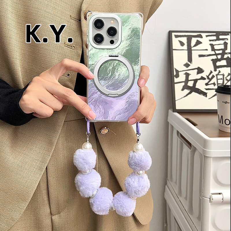 苹果时钟磁吸支架斜挎珠链手机壳适用于苹果17/16Pm华为mat