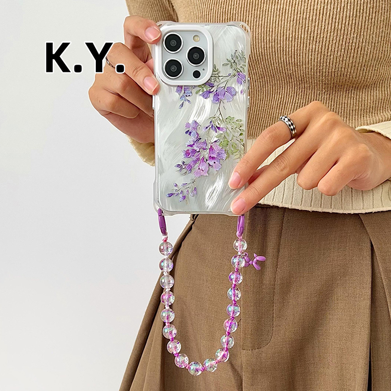 新中式紫藤花手机壳带挂绳适用于iPhone15/16pro华为m