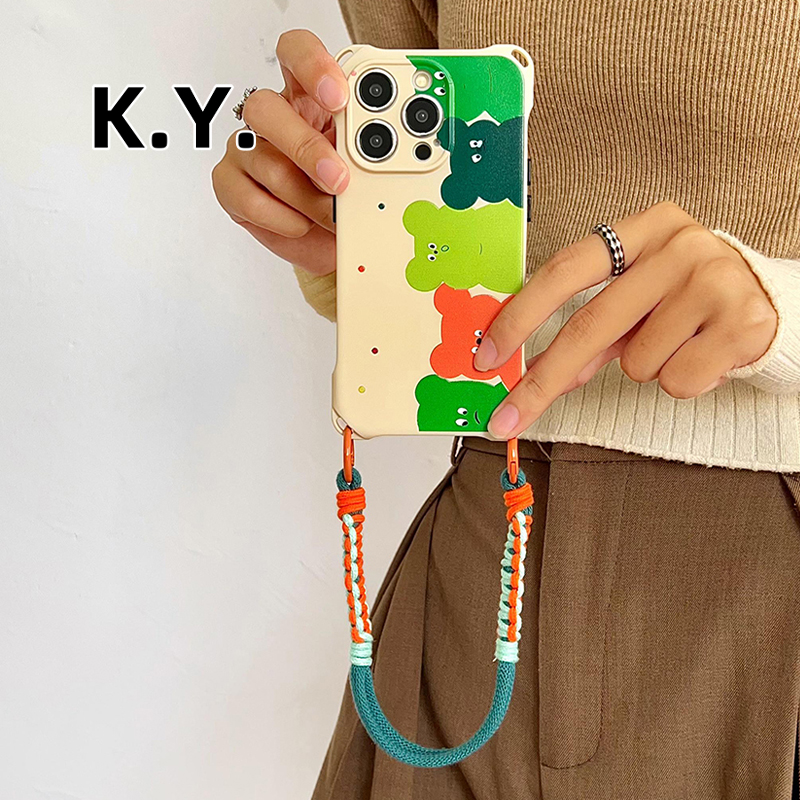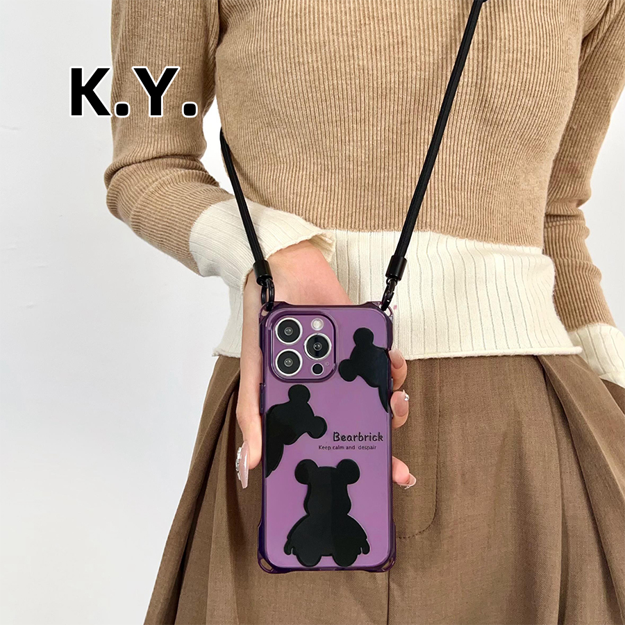 新款卡通小熊手机壳带挂绳适用于苹果16pro华为mate60/7