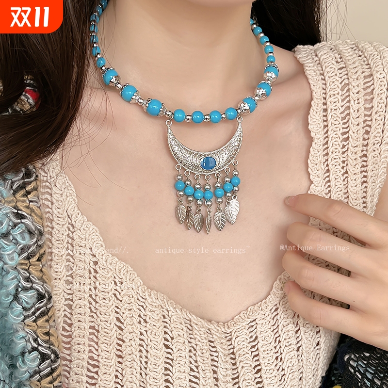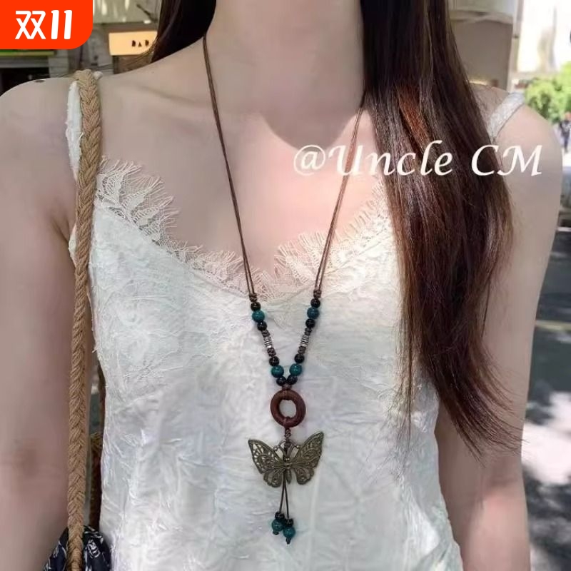 复古民族风蝴蝶项链女新中式长款毛衣链高级感波西米亚风挂脖配饰