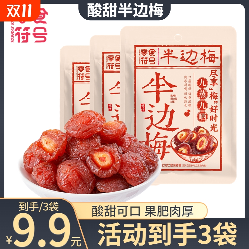 【9.9元到手3包】零食符号半梅干酸甜半边梅蜜饯果干果脯休闲零食