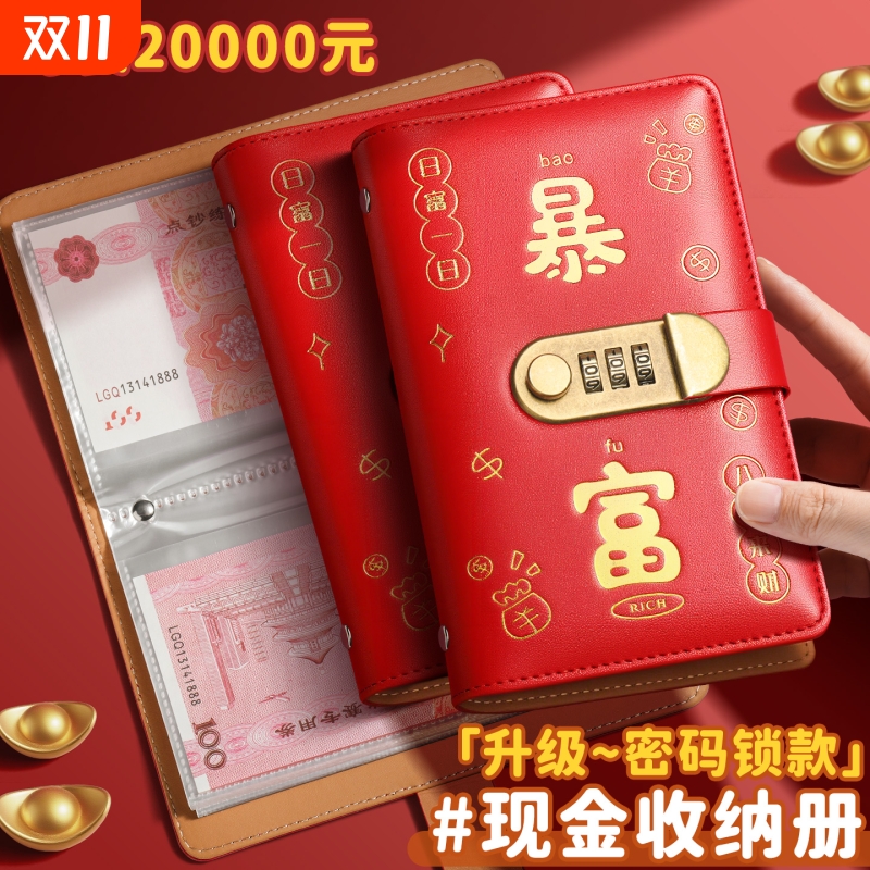 2万元存钱夹钱册现金存钱本密码锁2024年大容量只放钱网红可放1