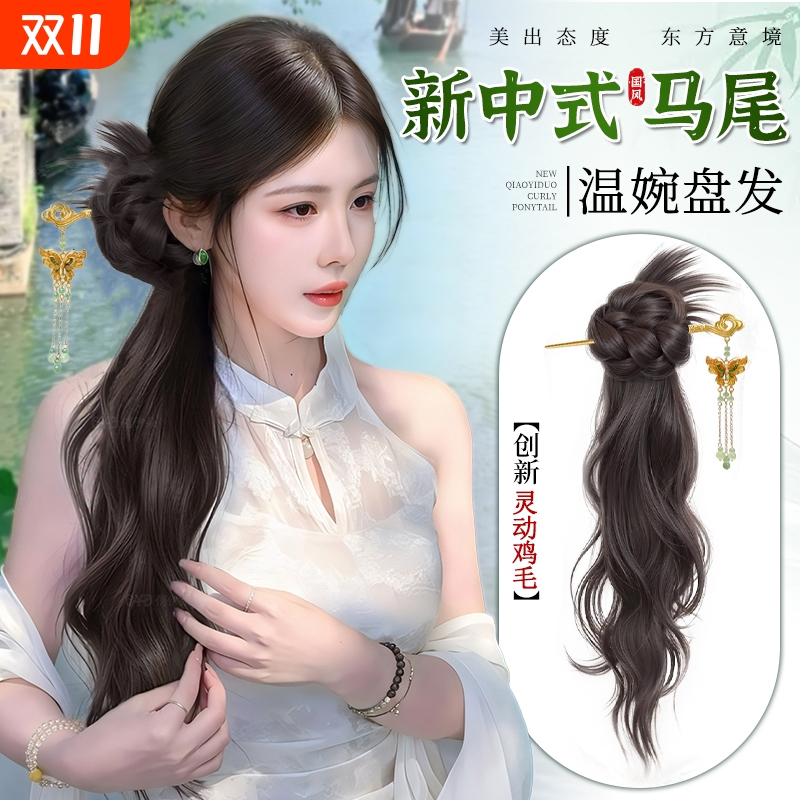 人鱼卷马尾高颅顶增发量假发抓夹辣妹御姐蓬松短马尾喷泉假发辫子