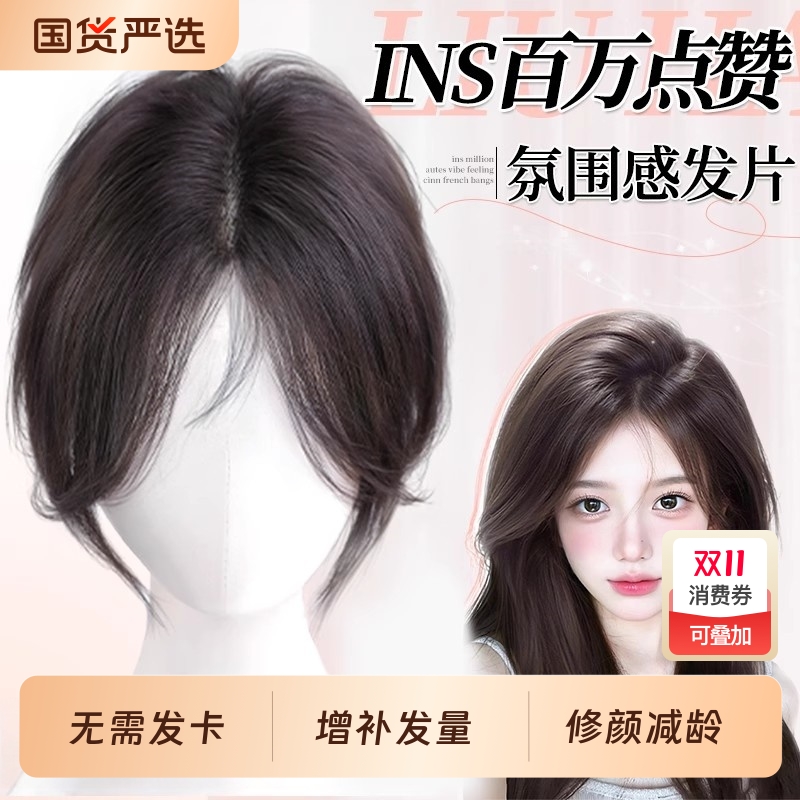 刘海假发女片头顶补发蓬松真发遮白发高颅顶增发量轻薄无痕假刘海
