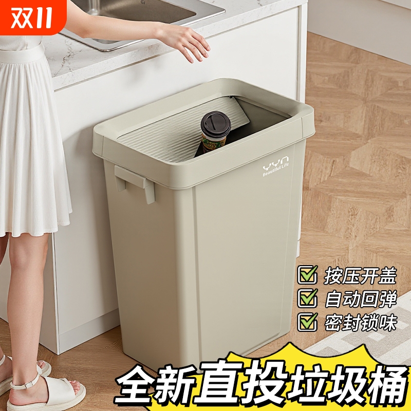方形垃圾桶家用新款大号大容量高颜值半透明卧室厨房客厅压圈纸篓