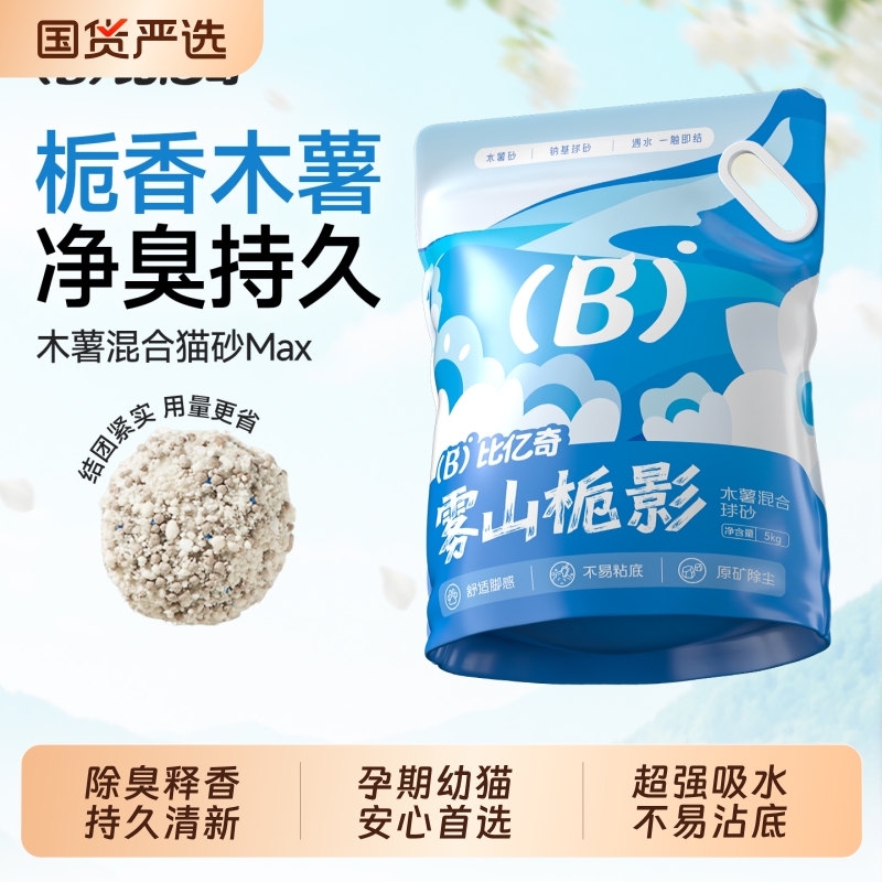 比亿奇木薯混合猫砂除臭防无粉尘不沾底天然钠基球砂猫砂幼猫专用