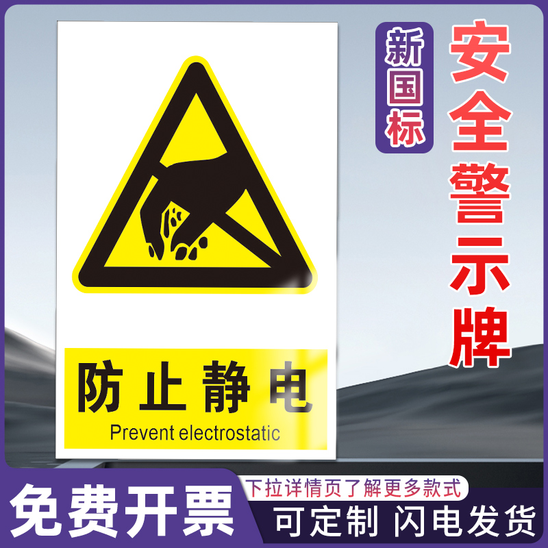 现货速发当心防止静电警示牌必须戴防静电手腕带指令警告标识标示