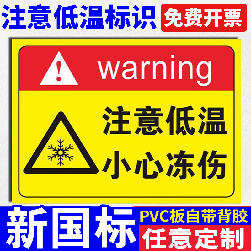 当心低温标识牌低温危险警示牌冷库重地闲人免进防止冻伤安全提示牌小