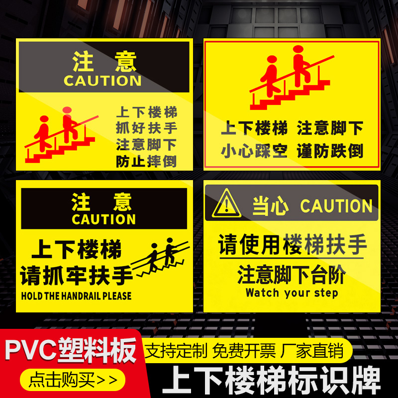上下楼梯注意安全提示贴纸当心碰头抓好扶手注意脚下防止摔倒警示标语